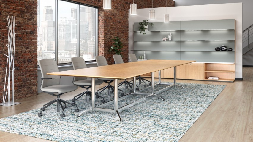 Split Y-Legs paired with TT-Legs and a footer bar create beautiful conference tables up to 240” wide and 72” deep. Y-Legs with footer bars can be used for smaller conference tables up to 144″ wide and 48″ deep.