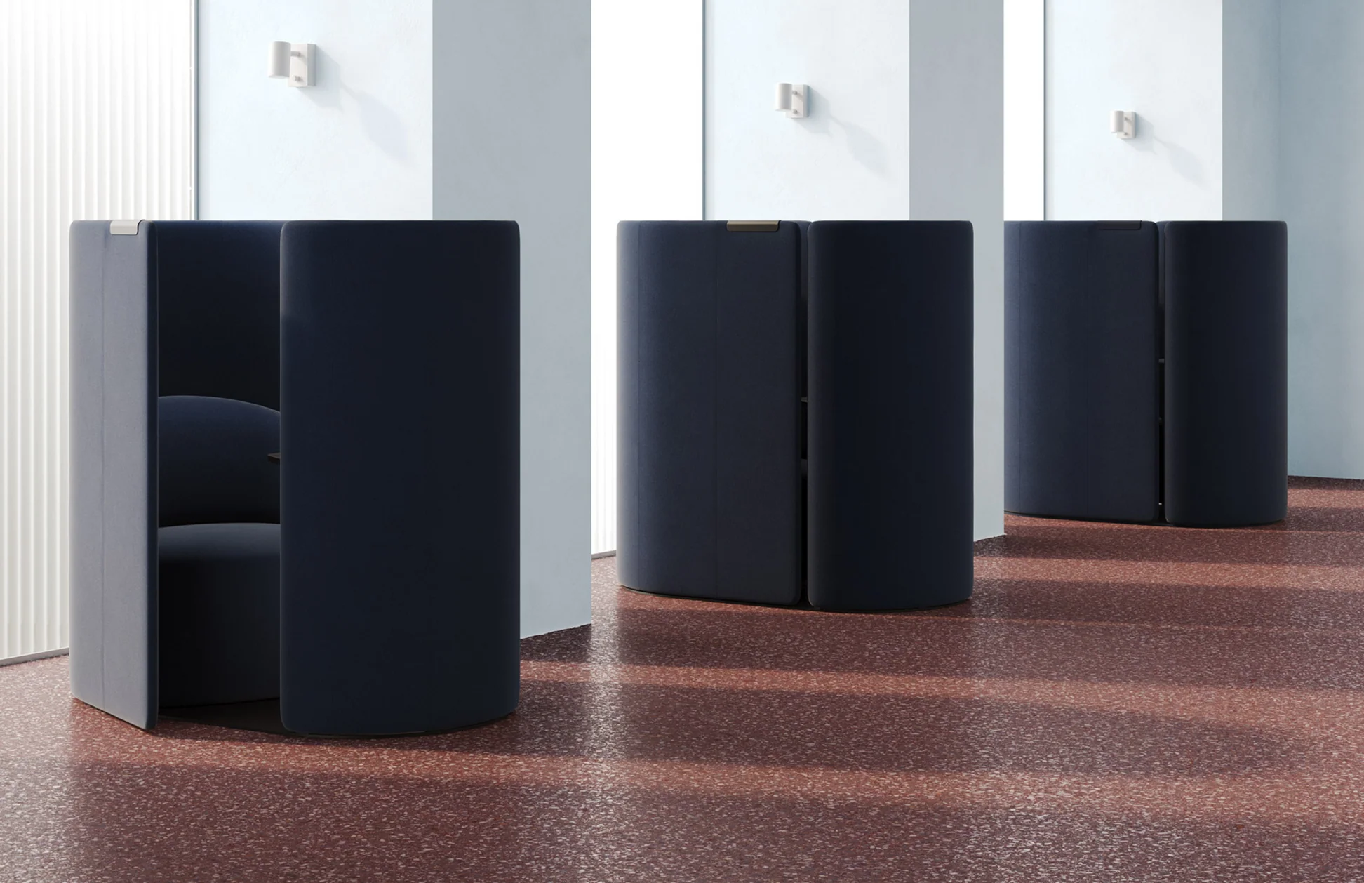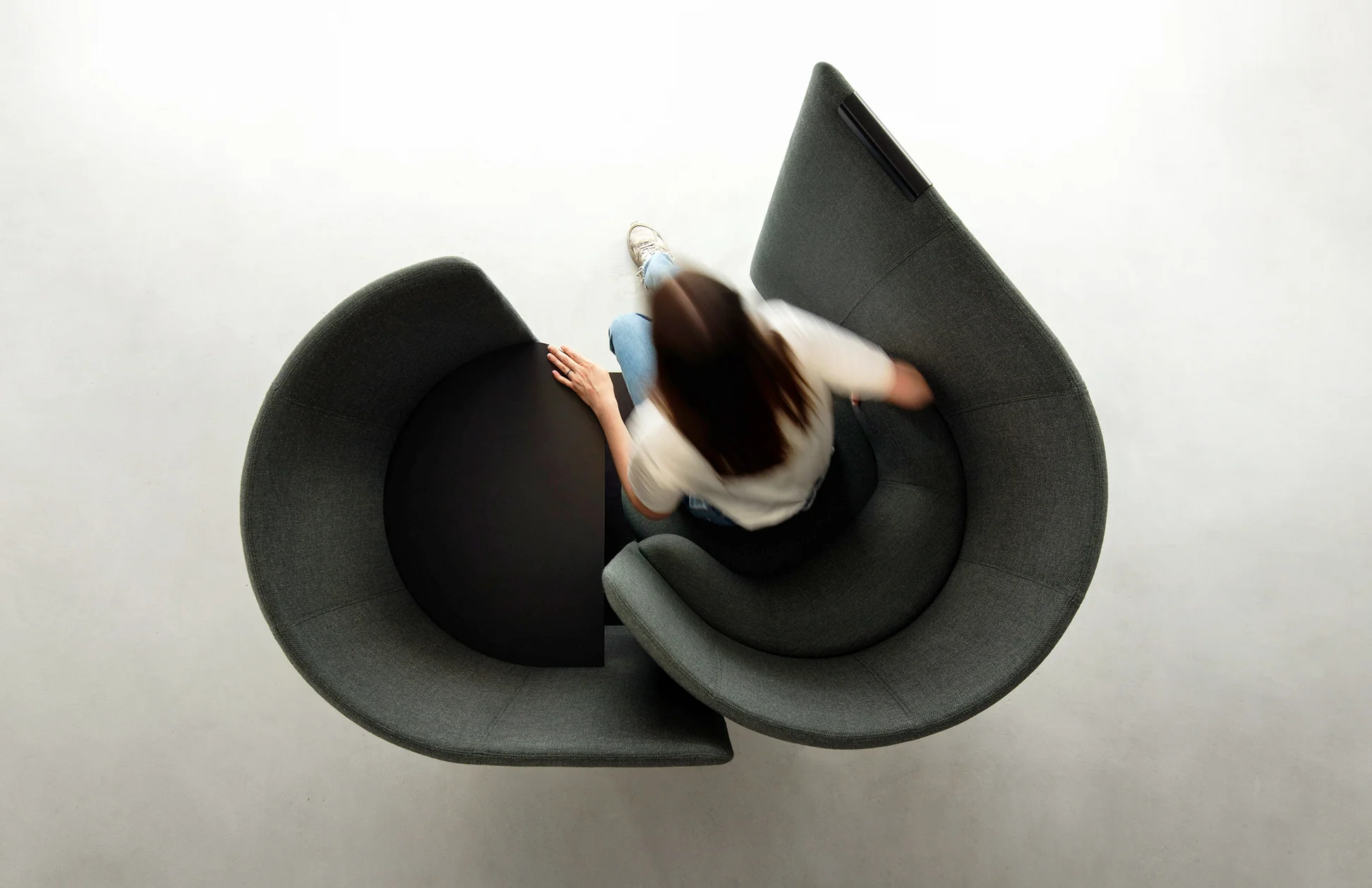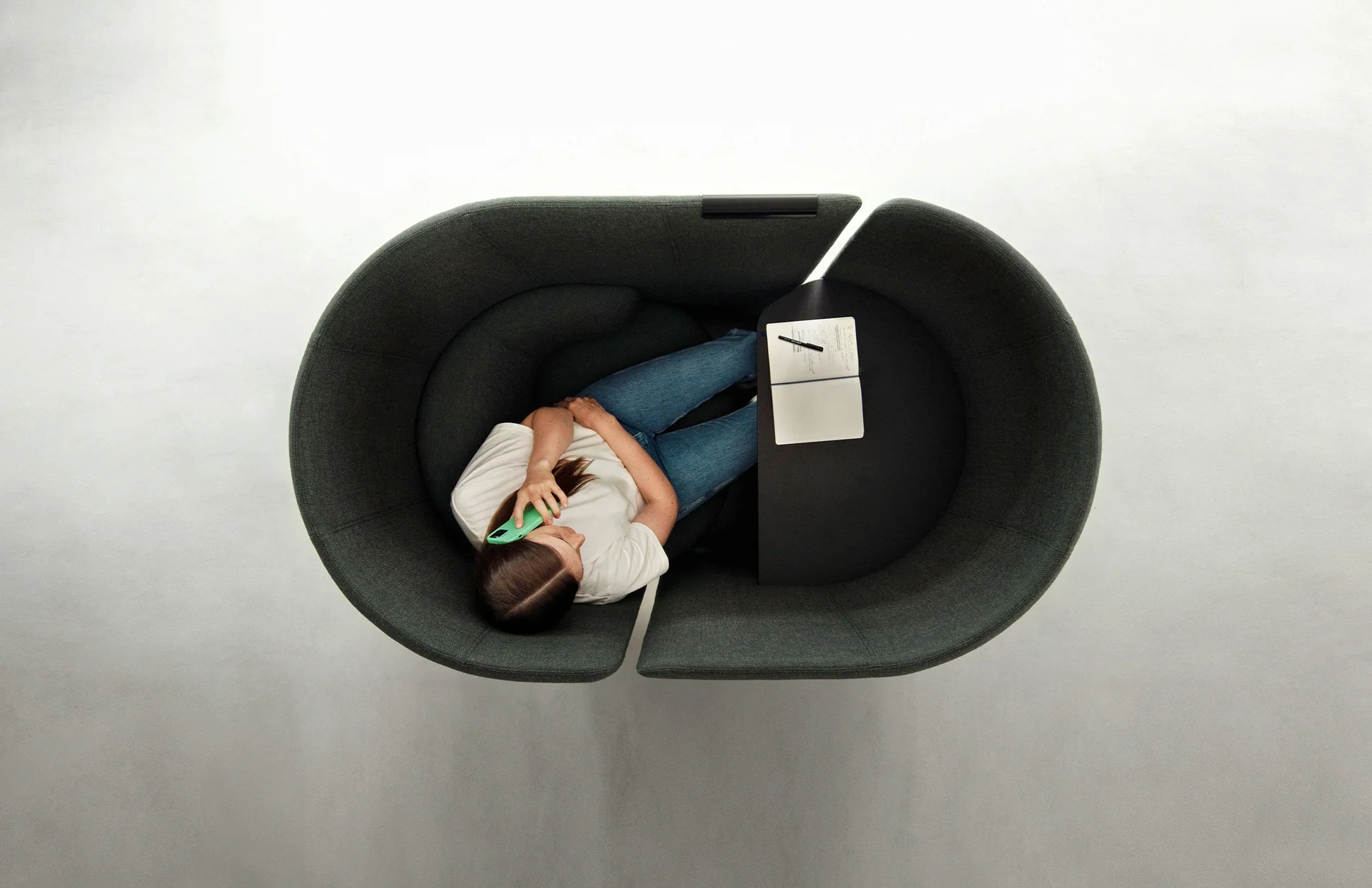 Tulipan’s compact footprint and rotating seat create a soft enclosure, offering effortless privacy, focus, and comfort within open-plan environments.